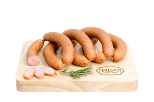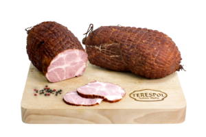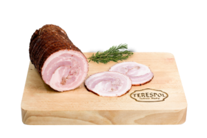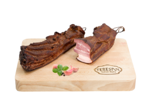 Zakład Przetwórstwa i Rozbioru Mięsa TERESPOL Tadeusz Mądry. Jesteśmy w pełni zaangażowaną firmą rodzinną z Nowej Wsi Szlacheckiej – niewielkiej miejscowości położonej na południu Polski w gminie Czernichów. Pierwsze kroki stawialiśmy już w 2011 roku kiedy to rozpoczęliśmy niewielką produkcję wędlin na rynek lokalny. Z biegiem czasu podjęliśmy działania w kierunku budowy nowego zakładu zgodnie z normami UE, który w pełni funkcjonuje już od 2018 roku. Specjalizujemy się w produkcji wyrobów tradycyjnie wędzonych w wędzarniach opalanych drewnem olchowo- bukowym. Stosowanie tradycyjnego sposobu wędzenia zapewnia wędlinom niezwykły smak, aromat oraz wysoką jakość . Do produkcji wszystkich naszych wyrobów wykorzystujemy wyłącznie polską wieprzowinę pochodzącą z okolicznych gospodarstw. Starannie wyselekcjonowane mięso, a także naturalne przyprawy to podstawa naszych produktów, które tworzymy według tradycyjnych receptur. Sam proces powstawania wędlin odbywa się przy zachowaniu wytycznych systemu bezpieczeństwa oraz higieny – HACCP. Nasza firma od początku swojej działalności jest przedsiębiorstwem rodzinnym, w związku z tym nie produkuje na masową skalę bo u Nas liczy się jakość, a nie ilość. Zatrudniamy również doświadczoną i wykwalifikowaną kadrę pracowników, których znaczna część posiada kilkunastoletni staż pracy w branży mięsnej. W swojej ofercie posiadamy bogatą gamę pozycji asortymentowych wyrobów wędliniarskich i podrobowych, z których najwyższym uznaniem i rosnącą popularnością cieszy się kiełbasa wiejska. Posiadamy także w naszej ofercie wysokiej jakości wieprzowinę oraz wołowinę z własnego rozbioru.